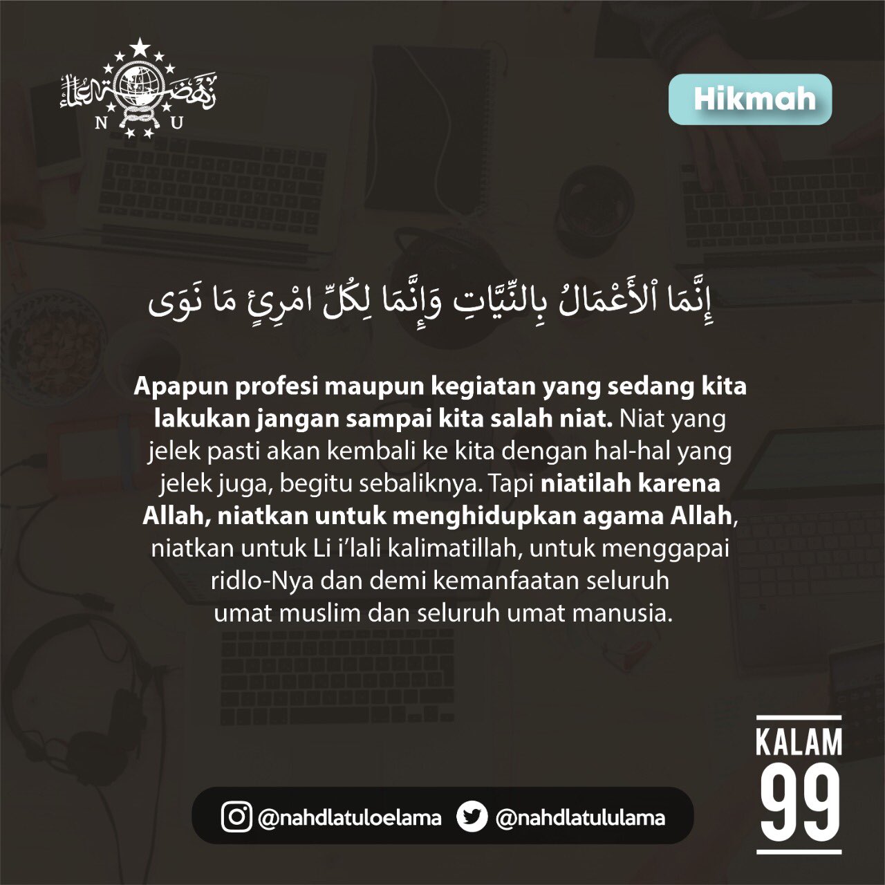 Nahdlatul Ulama A Twitter Hikmah إ ن م ا ا لأ ع م ال ب الن ي ات و إ ن م ا ل ك ل ام ر ئ م ا ن و ى Apapun Profesi Maupun Kegiatan Yang Sedang Kita Lakukan Jangan Sampai Kita Salah Niat Niat Yang Jelek Pasti Akan Kembali